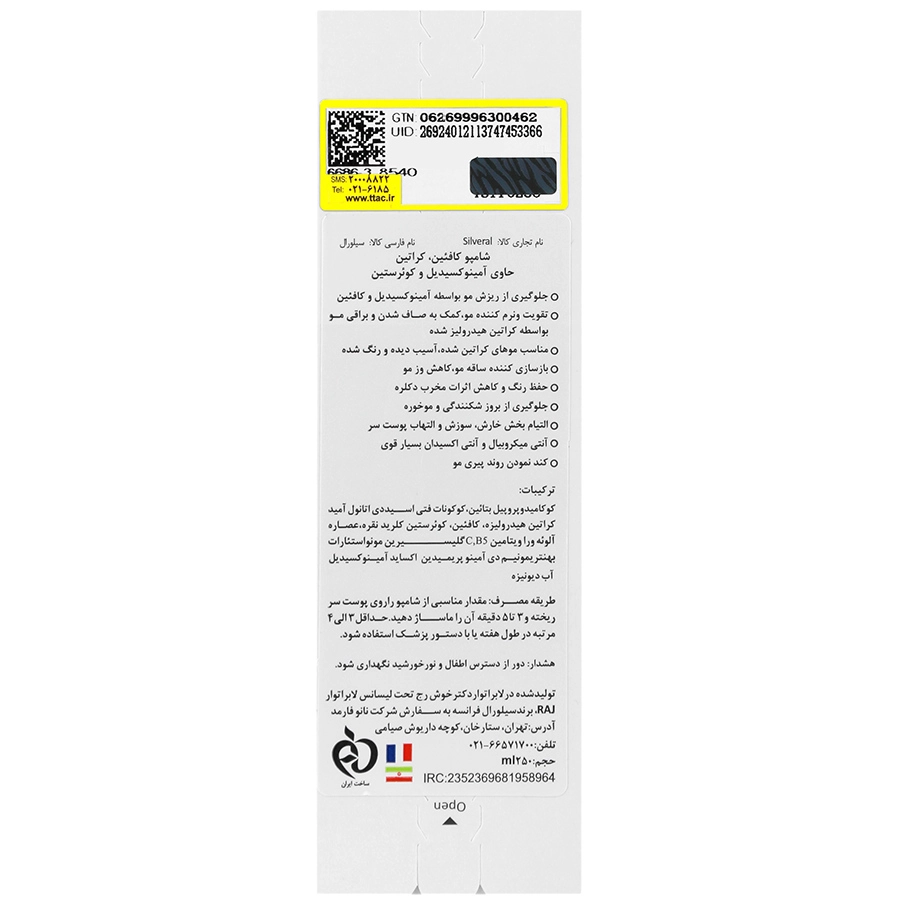 شامپو کافئین کراتین آمینوکسیدیل سیلورال